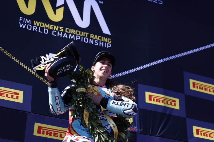 Maria Herrera continues to make history, becoming the 2025 FIM Women’s Circuit Racing World Champion in Jerez. This victory marks a significant moment for the Klint Forward Factory Team and for the WorldWCR series, as Herrera’s second season in the championship culminates in a title.