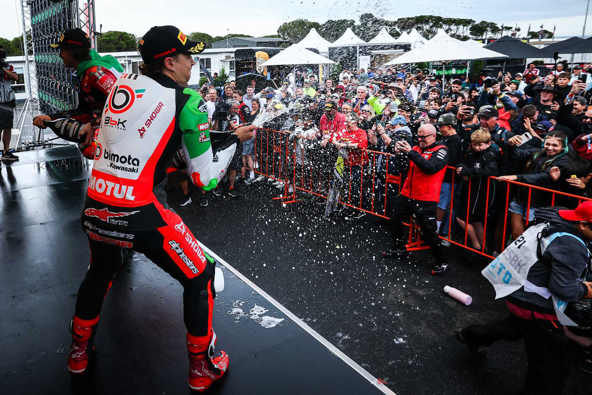 A torrential downpour made Race 2 treacherous, but Bulega converted pole into the lead and controlled the race.