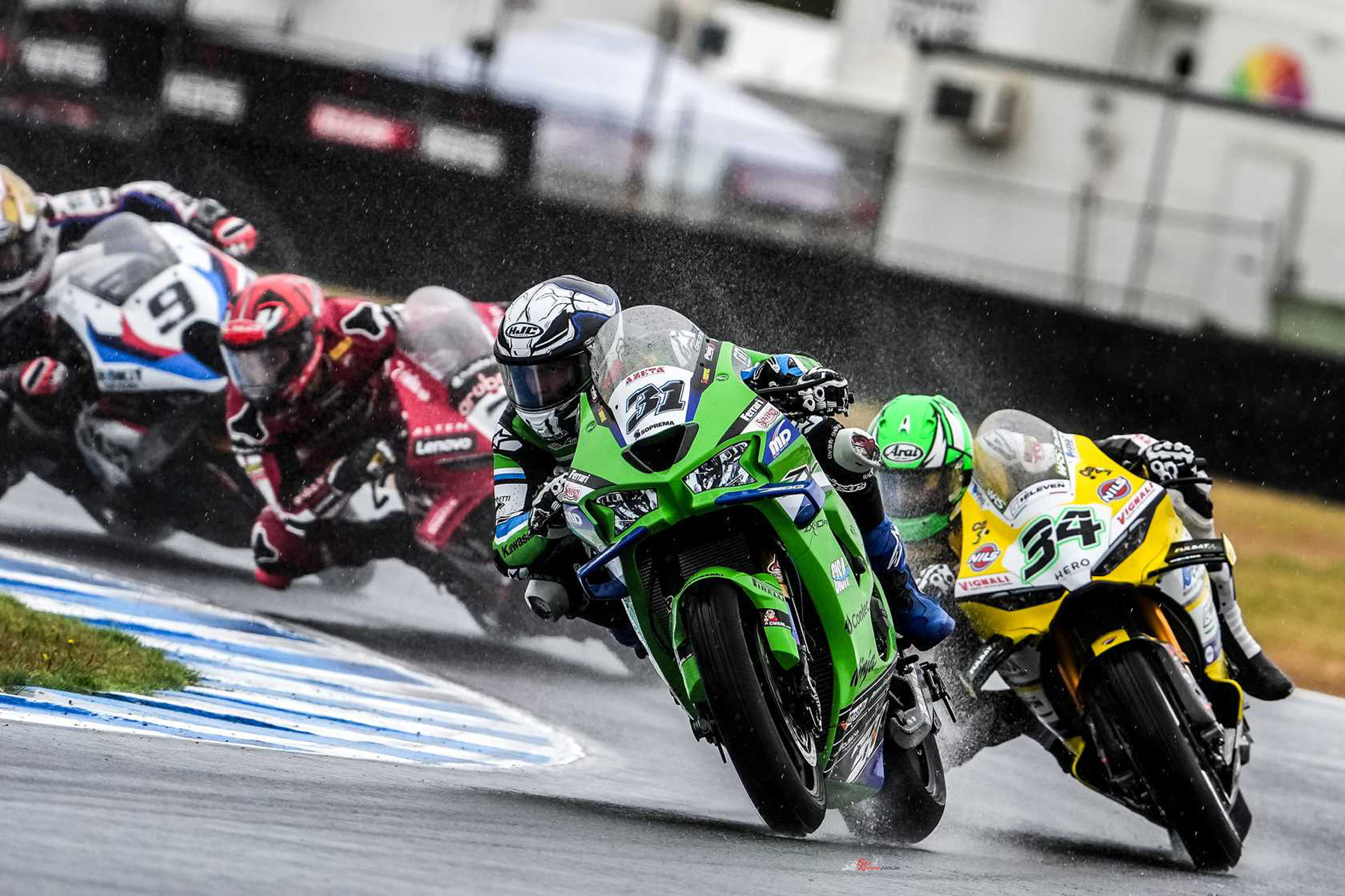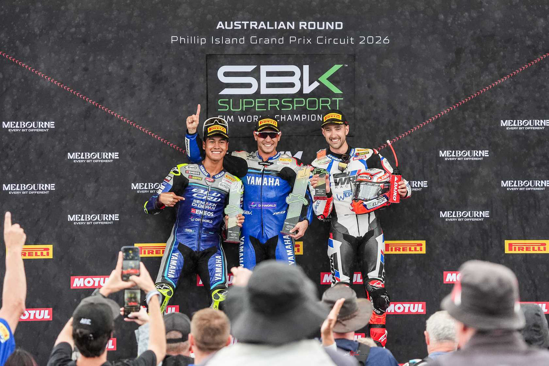 Tarran Mackenzie (MGM Optical Express Racing) capitalised on the wet to secure a career-best fourth, while Alex Lowes (bimota by Kawasaki Racing Team) crashed later in the race, easing Mackenzie’s run to the finish. Andrea Locatelli (Pata Maxus Yamaha) led the Yamaha charge in fifth, ahead of Danilo Petrucci and Miguel Oliveira from the ROKiT BMW Motorrad WorldSBK Team.