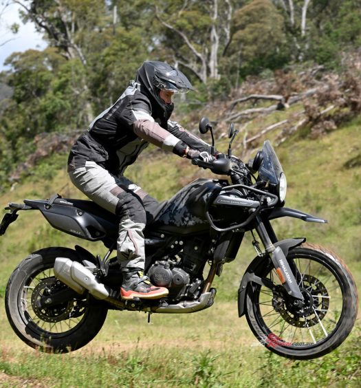 Bob Walters from CFMOTO dropped the bike off with barely 100k’s on the clock – you can’t get much fresher than that. This did not provide the best initiation as the whole bike felt tight and a bit tentative. Not only the engine and gearbox, but the steering felt a bit lazy and the brakes quite dull and lacklustre. The first thing we did was Jeff riding it for photos.