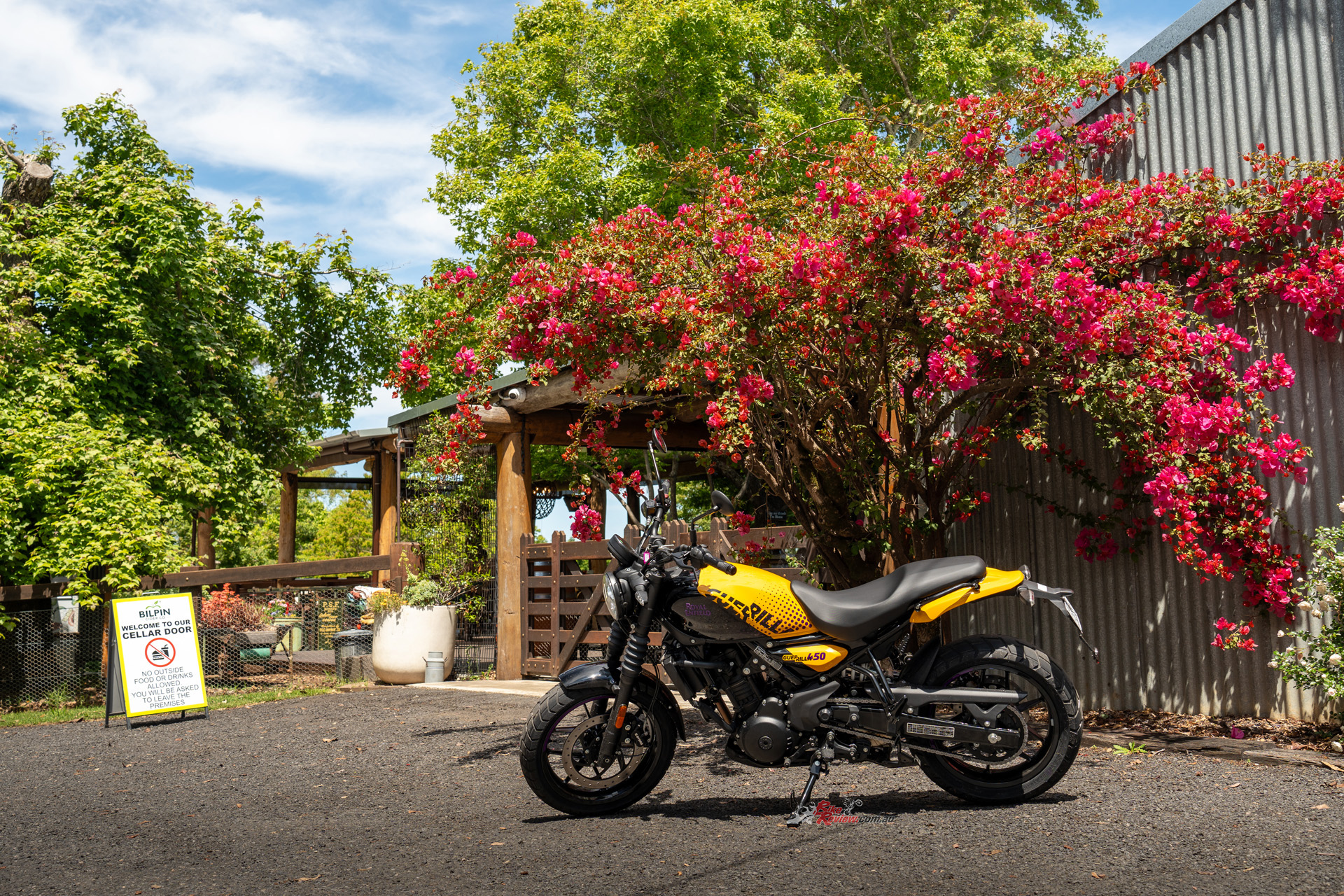There’s enough punch from the single to break traction at the rear and kick the back end out in a controlled slide, something that’ll put a huge grin on your face. More importantly, the front-end felt planted and predictable, inspiring confidence even when pushing a little harder in loose conditions. The stock tyres also deserve a mention here. They struck a solid balance between road grip and dirt road composure, handling both surfaces far better than we anticipated from what is essentially a road focused naked. For riders who occasionally find themselves exploring gravel shortcuts or country backroads, the Guerrilla 450 won’t hold you back.