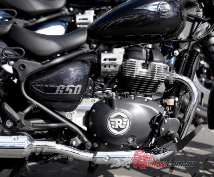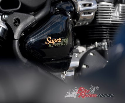 Finally, the Super Meteor’s paint finish is excellent while its distinctive tank badges, inspired by historic Royal Enfield designs, are faceted in chrome and accented with two colours of tinted infill that results in a gorgeous, jewel-like finish.