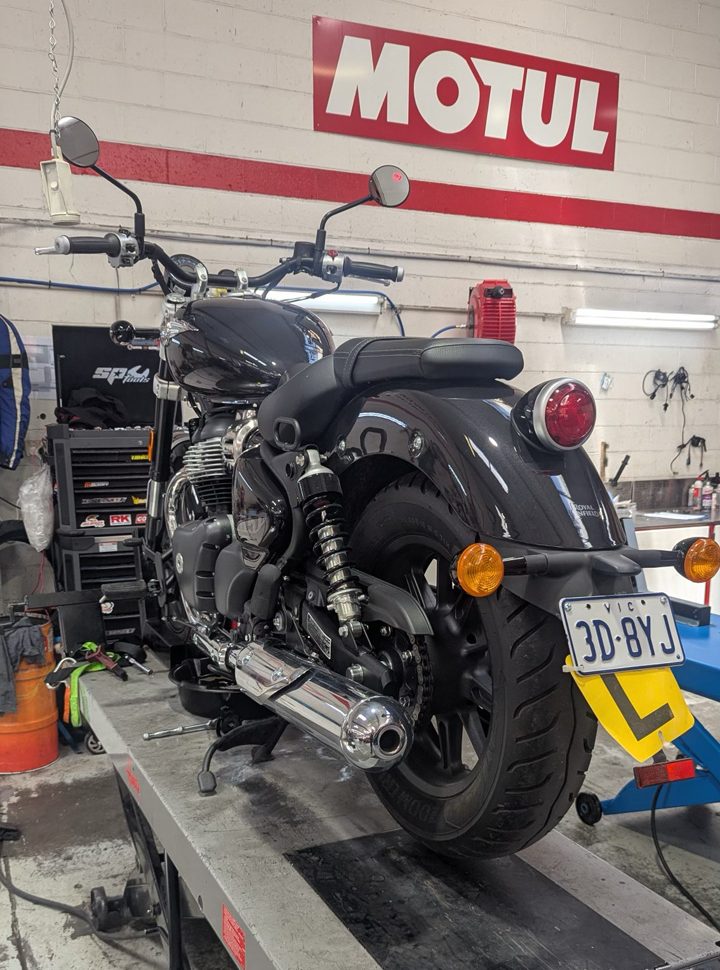 Axel clocked up 1000km in no time on the BikeReview Super Meteor 650, so it was time for a first service. Axel chose A1 Motorcycles in Ringwood, Victoria, and he was super happy with the job done and the excellent customer service.