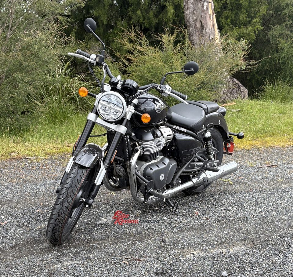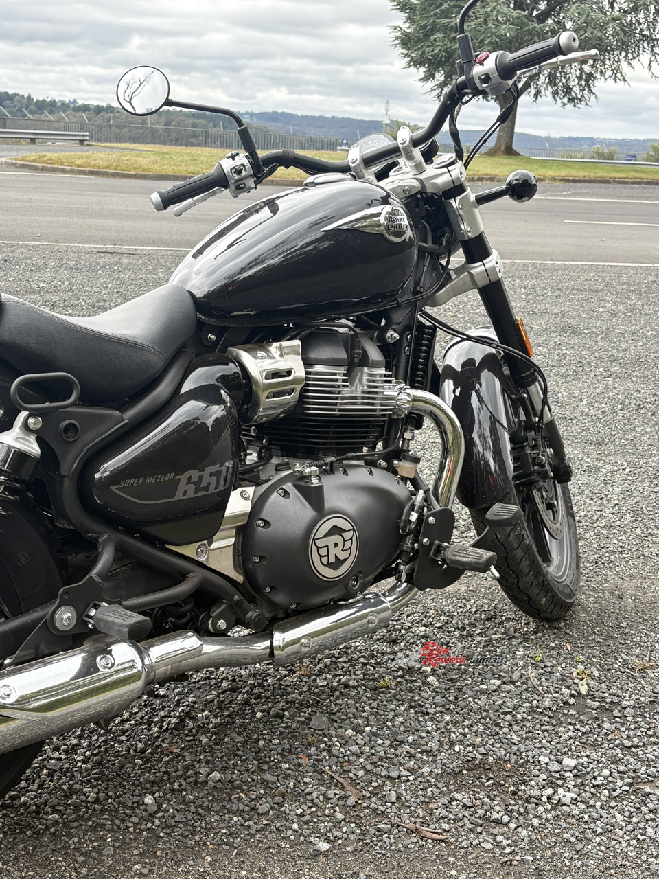 I drove non-stop to pick up our brand new Astral Black Super Meteor. I had seen photos of the bike on the Royal Enfield website and Simon and Jeff’s reviews from the global and the local launch, but nothing could prepare me for seeing it in person. Its sleek body lines, more chrome than a Low Rider, I just can’t believe how good it looks, especially for a LAMS approved bike.