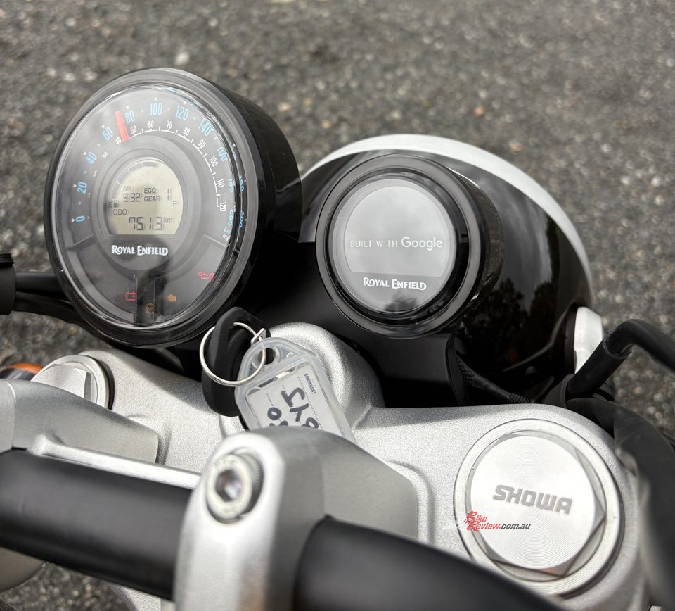 There is Royal Enfield’s celebrated TBT (Turn-By-Turn) navigation pod, known as the Royal Enfield Tripper. A first on any Indian-made motorcycle when introduced on the Meteor 350, this highly-focused tool, developed in collaboration with Google, links to the rider’s smartphone via Bluetooth.