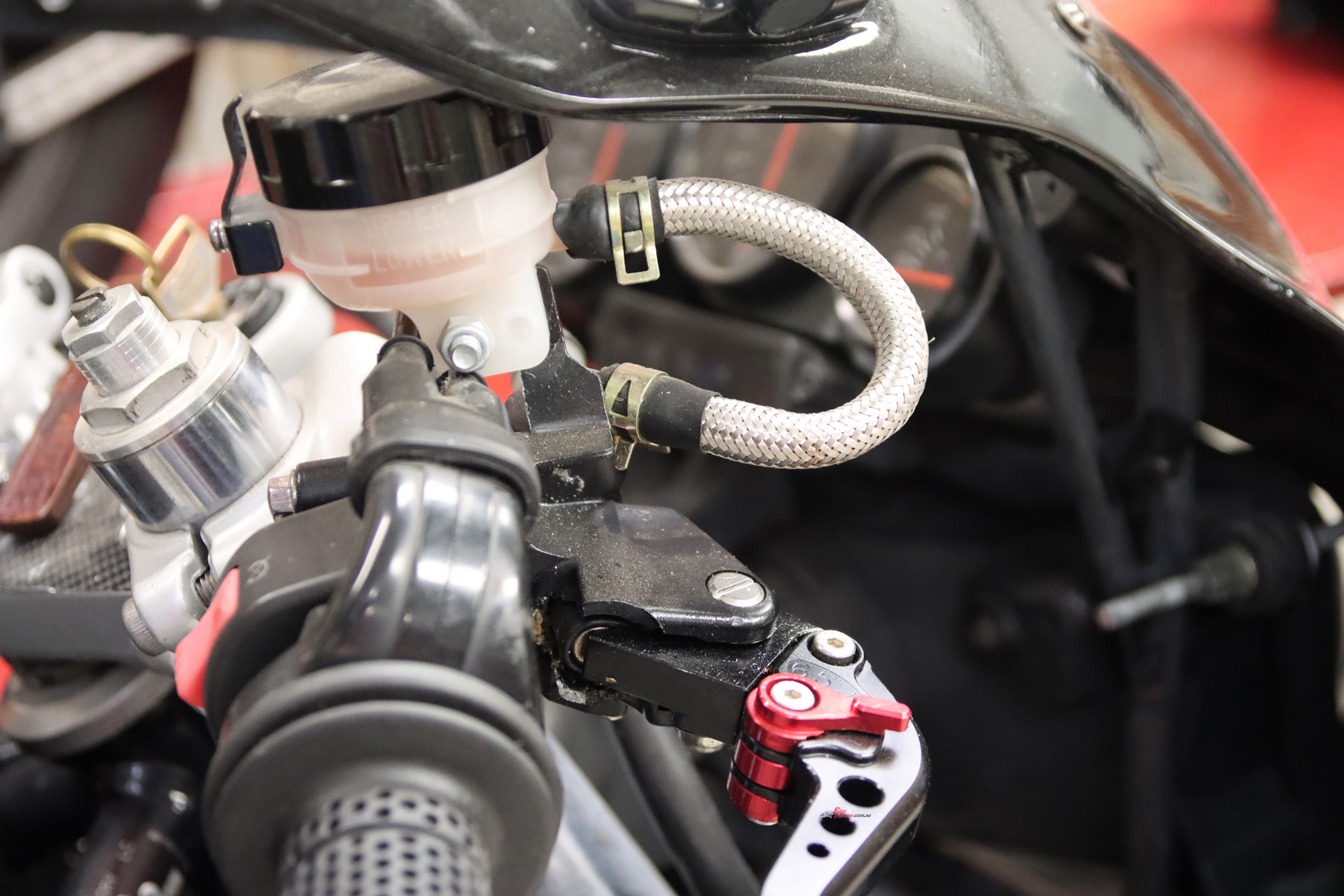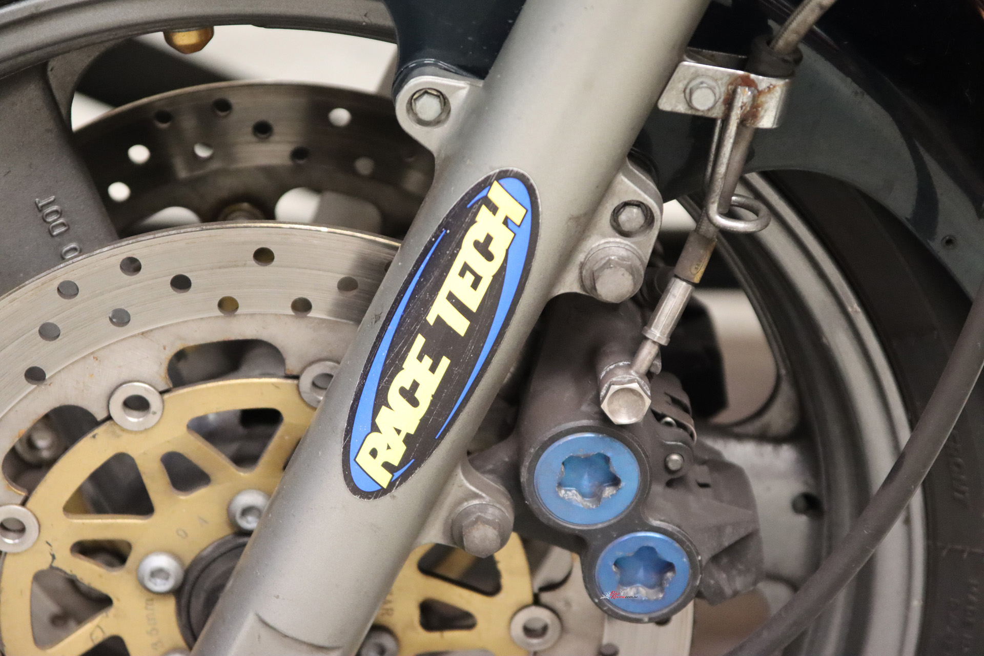 As well as the right paintwork, the 1997 bike came with a handful of upgrades I’d intended to carry out; gold cartridge forks, braided brake lines, blue-spot calipers and a carburettor tuning kit. All upgrades that improve safety and rideability while not detracting from the original finish that was important for me to achieve. And while it was fitted with aftermarket pipes, it also came with the original slip-ons, the original levers that had been swapped out for aftermarket ones, a handful of OEM bits still in the packets and, curiously, a used top triple clamp. I look forward to finding out if the mystery of its inclusion will ever be solved.