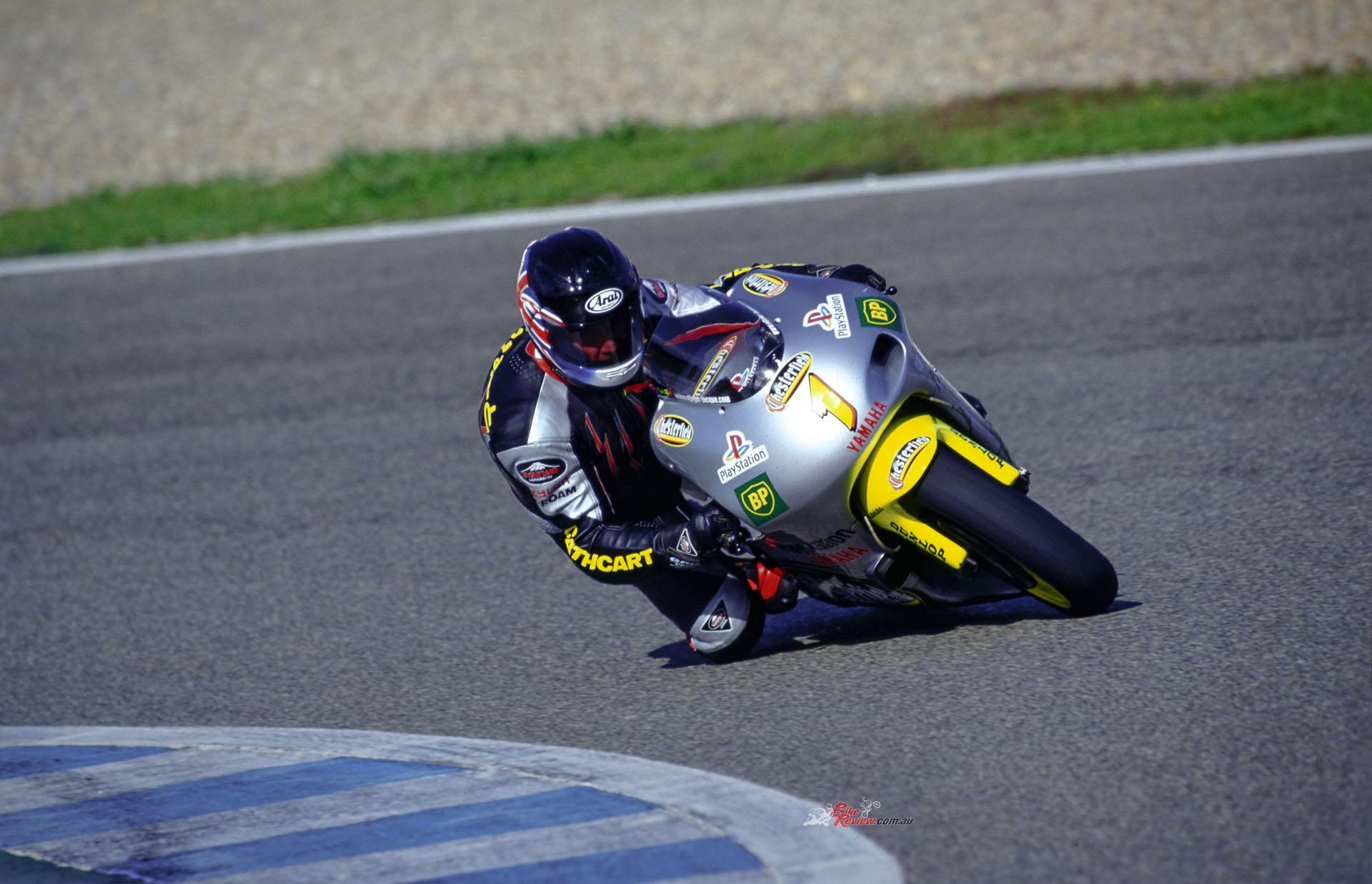 In 2000, Yamaha dominated, clinching five titles capped by Olivier Jacque’s last-corner 250GP triumph at Phillip Island. Alan rides that bike... Photos: Gold ‘n’ Goose