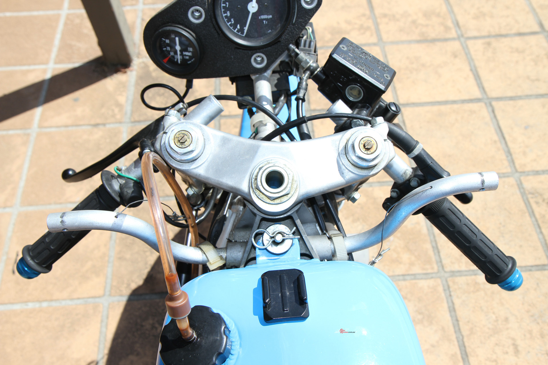 17in wheels front and rear on Jack’s RS, and his 888 race number. It’s quite a long reach to the tiny bars.