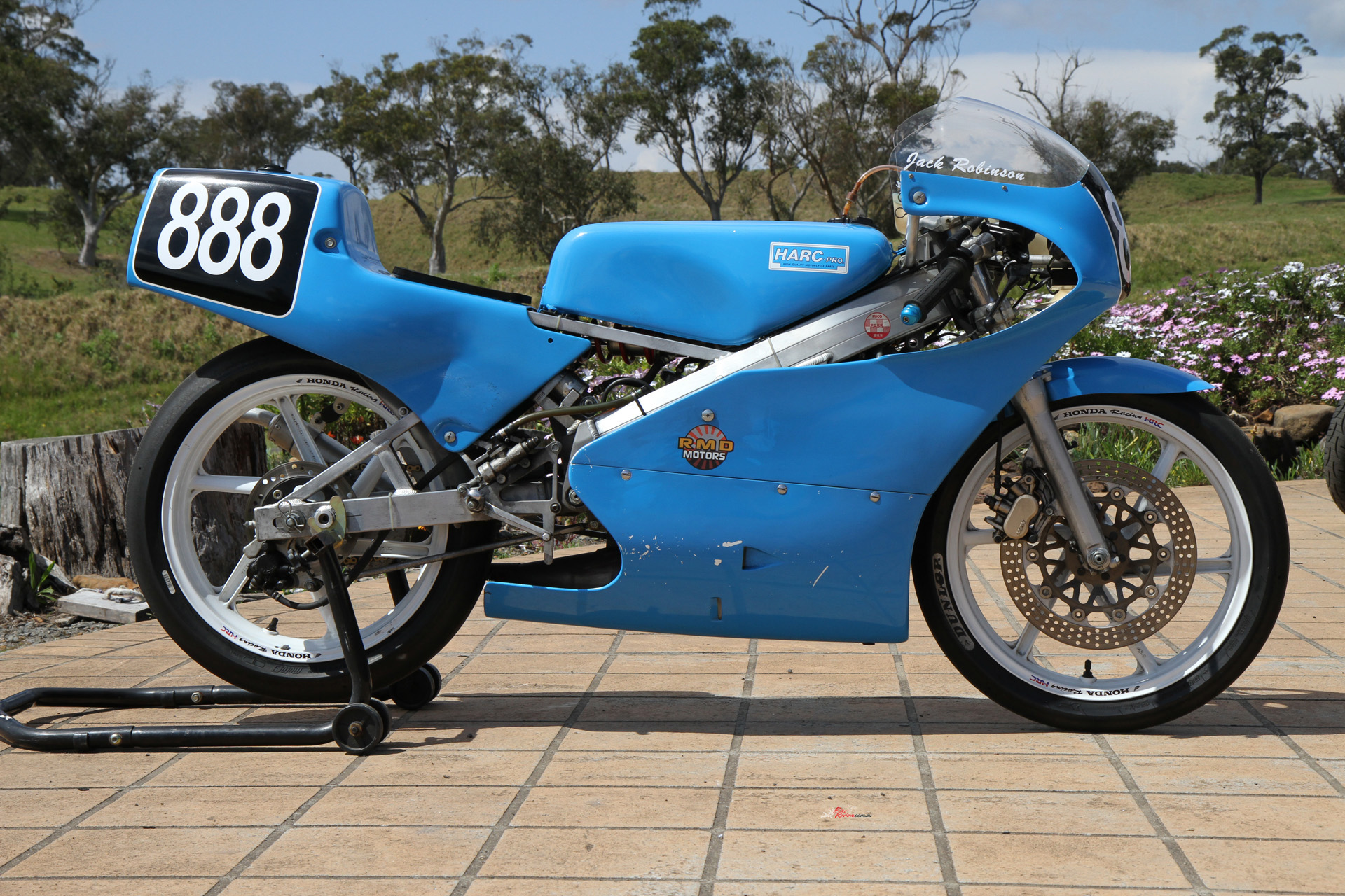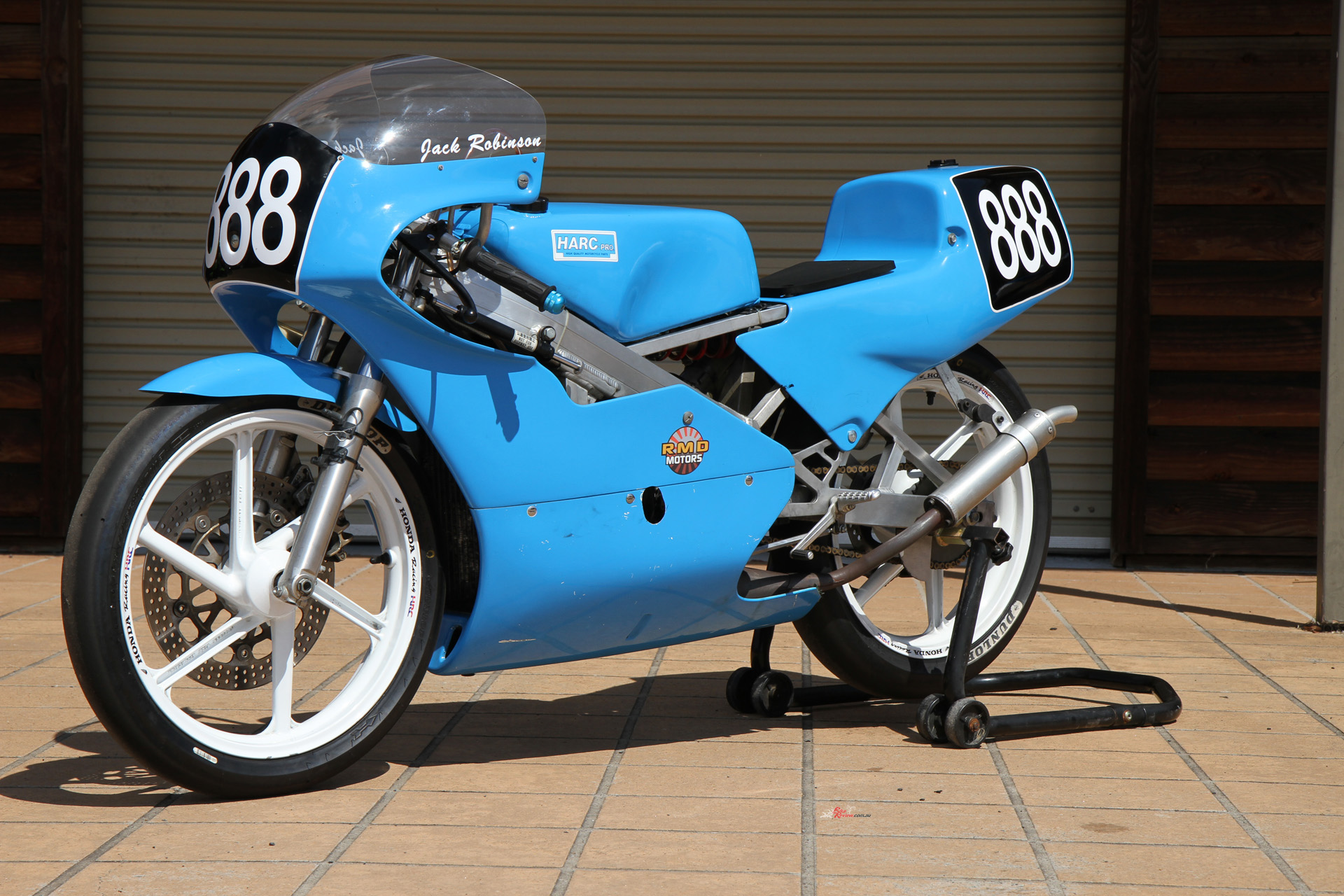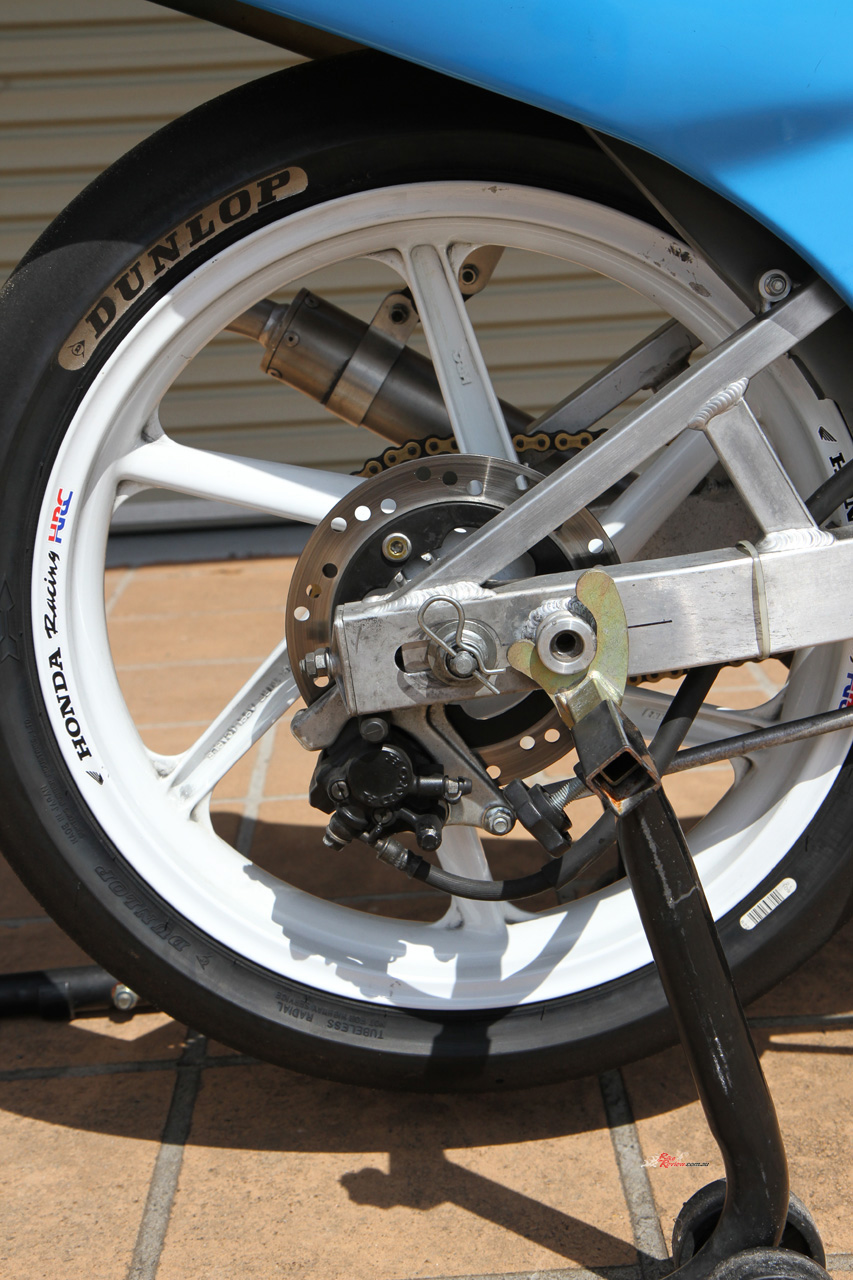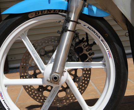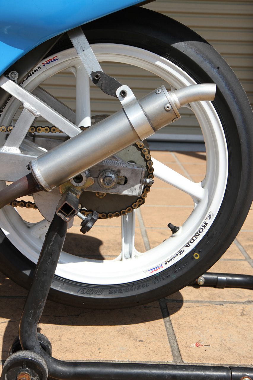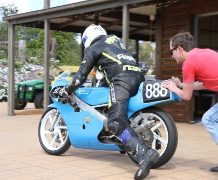That was the case when I was handed the chance of a lifetime: an afternoon at The Farm on Post Classic Racing Association pointy end competitor at the time, young Jack Robinson’s 1989 ex-HARC-Pro Honda RS125R (with some 1990 bits). Jack is younger than most PCRA rider, but rides with speed and skill far beyond his age. He’s bloody fast, that’s for sure…