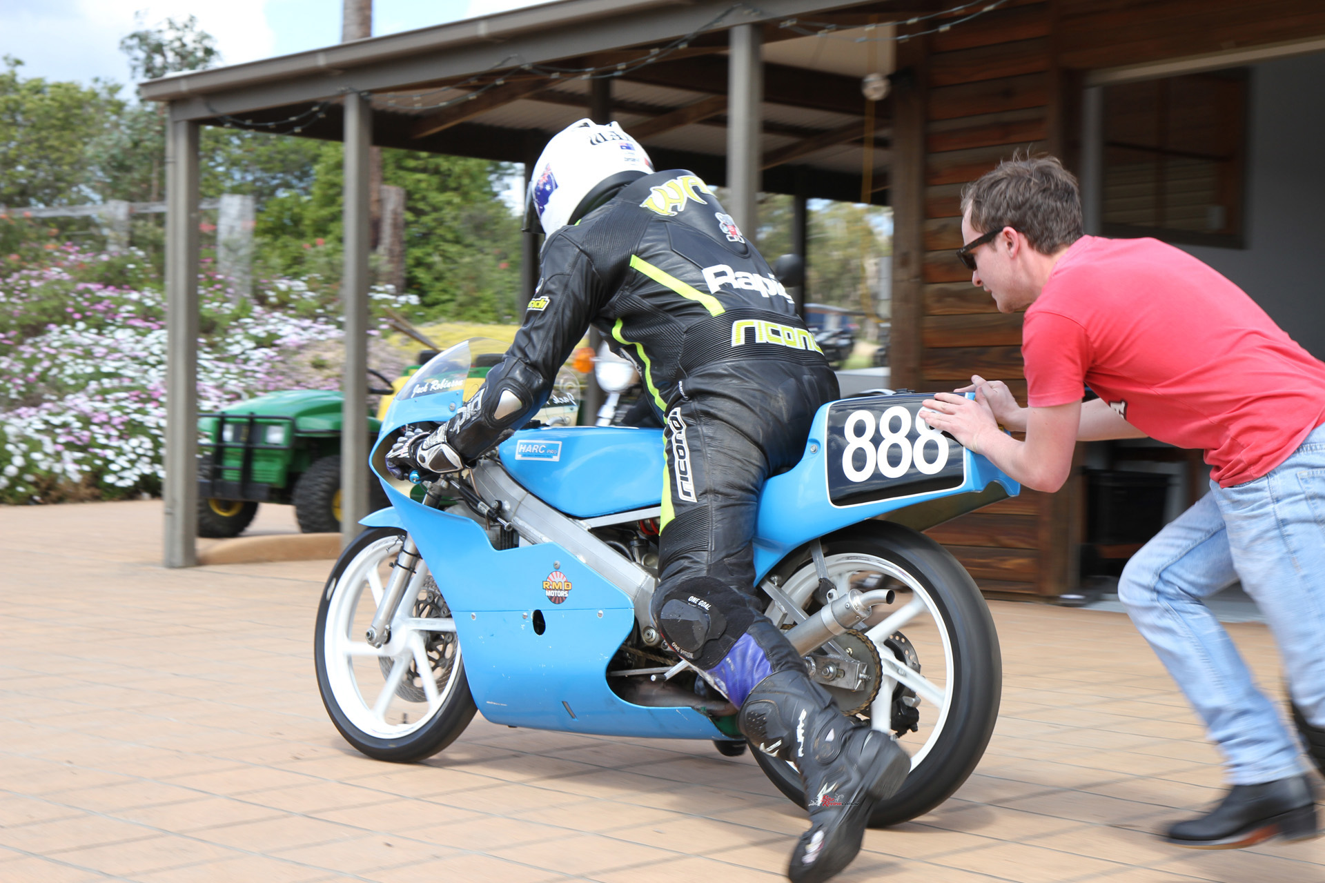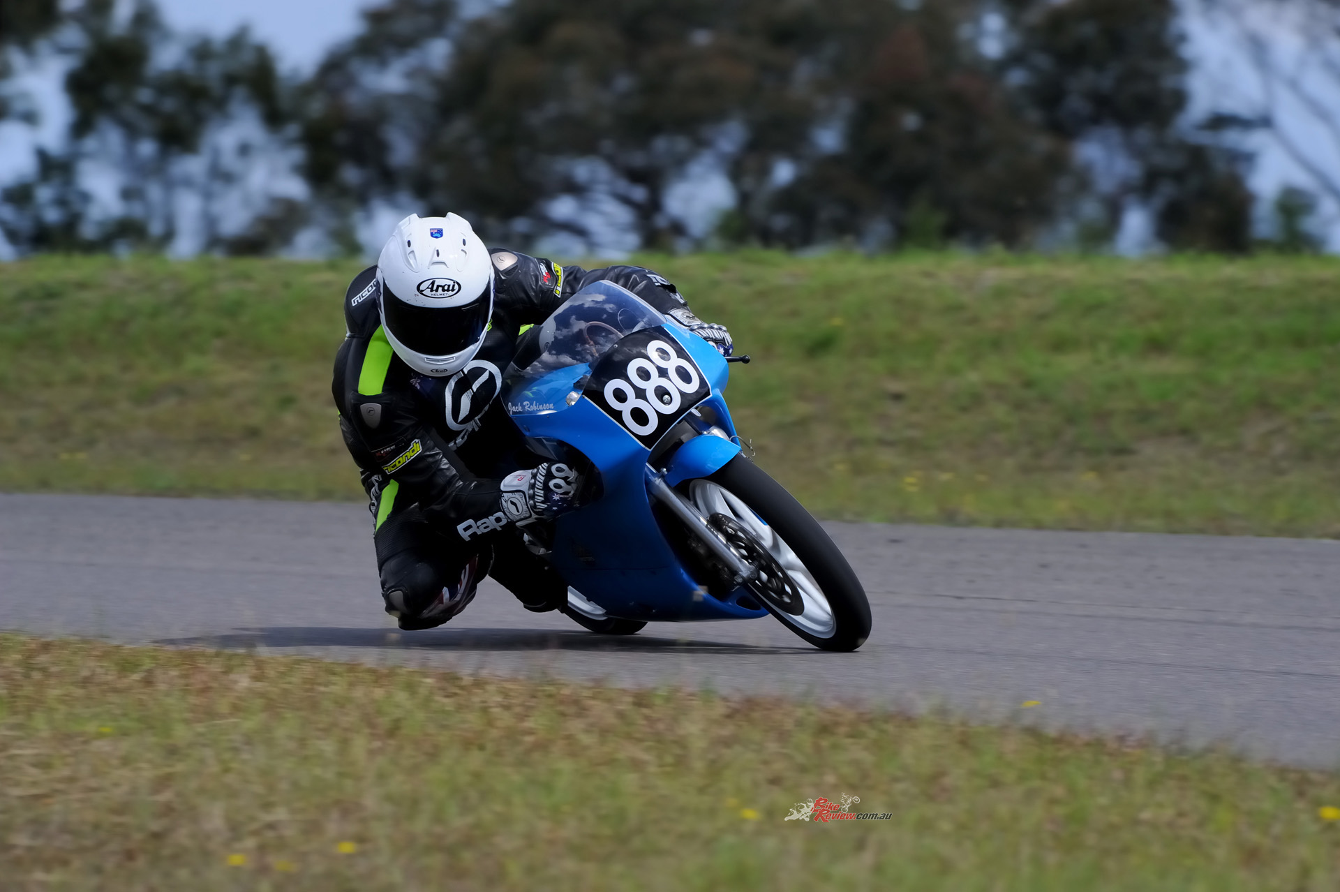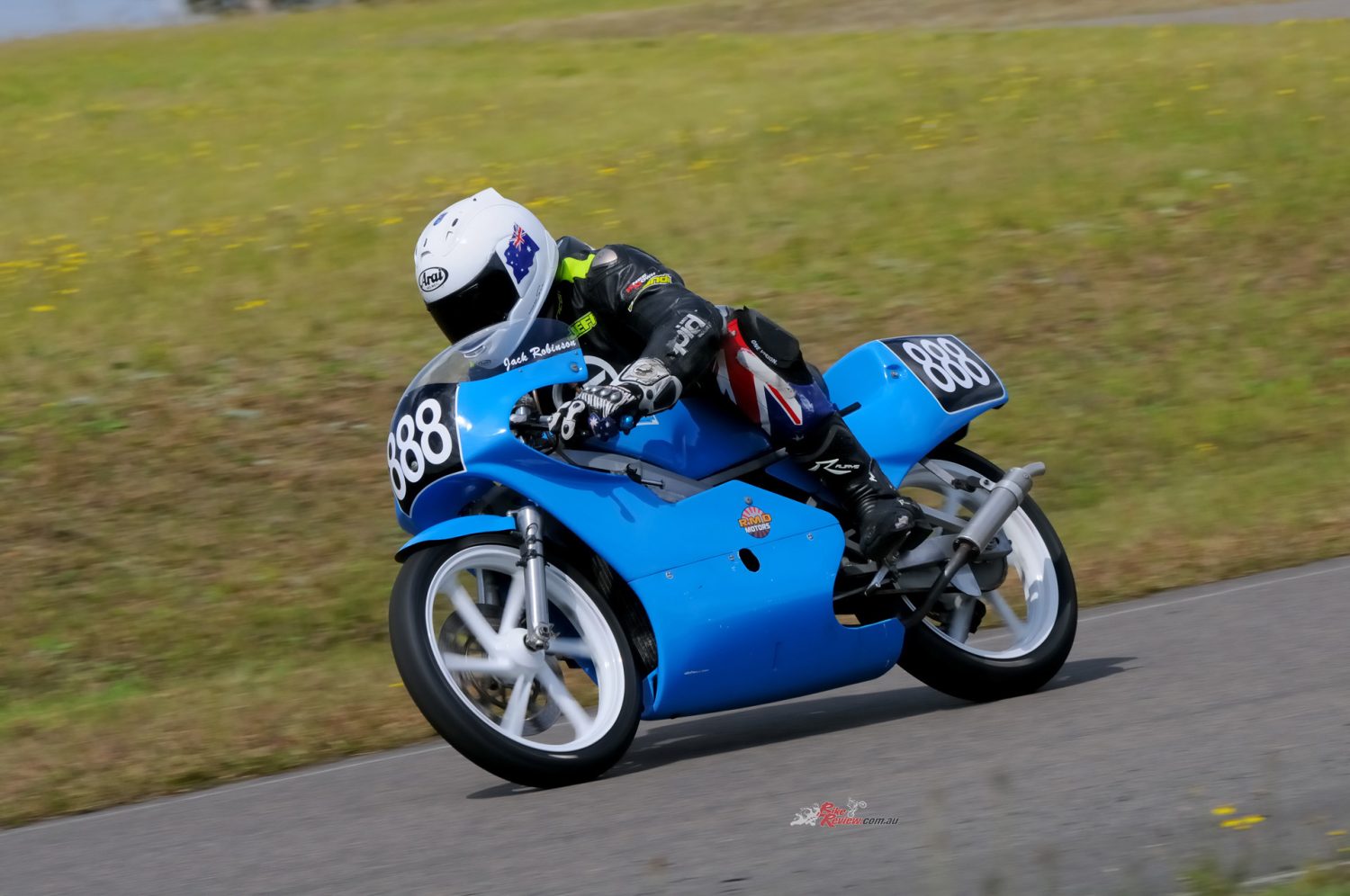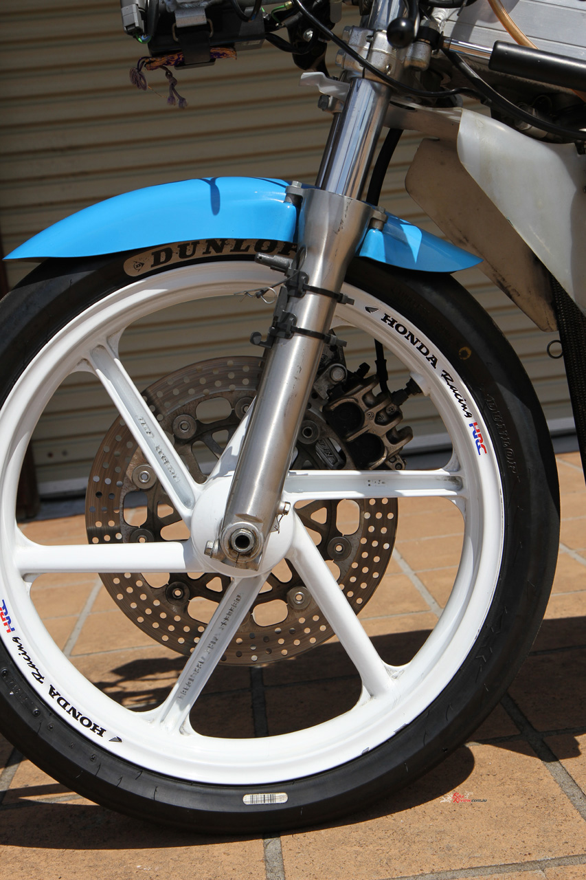 That was the case when I was handed the chance of a lifetime: an afternoon at The Farm on Post Classic Racing Association pointy end competitor at the time, young Jack Robinson’s 1989 ex-HARC-Pro Honda RS125R (with some 1990 bits). Jack is younger than most PCRA rider, but rides with speed and skill far beyond his age. He’s bloody fast, that’s for sure…
