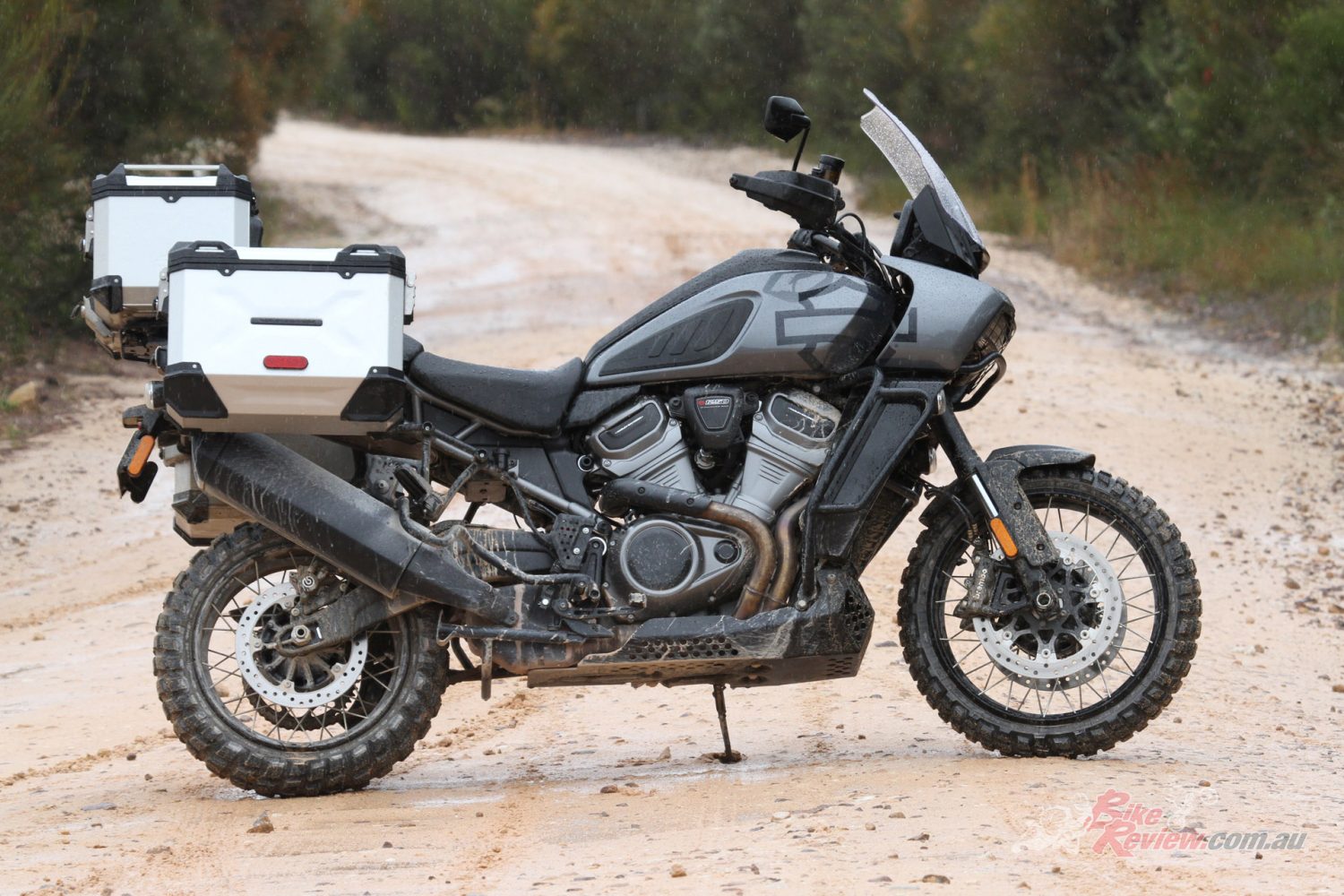 Of my 1000km test, 600km was dirty. Sand, mud, hard pack, loose rock, grass, fire trails and smooth dirt roads. It had everything thrown at it. Nothing could stop the Pan America. My test bike was fitted with Michelin Anakee Wild tyres, hard luggage, a bash plate, crash bars and spotlights. The hard luggage proved handy; however the key is thin and bends easily. Hard luggage is not allowed at a lot of events here, as it can cause injures. I prefer soft luggage for off-road riding.