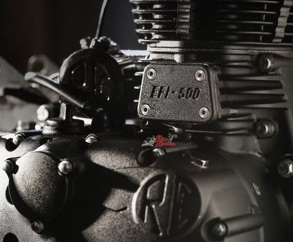 Engine: Air-cooled, four-stroke, single-cylinder, OHV, 499cc, 84 x 90mm bore x stroke, 8.5:1 compression, Digital Electronic Ignition, Keihin EFI, Twin-Spark, wet sump Gearbox: Five-speed, constant mesh Clutch: Wet, multi-plate